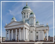 Finlandia, Helsinki - Catedral Tuomiokirkko. Helsinki, capital de Finlandia, esta a orillas del Mar Báltico, la ciudad está formada por un enjambre de islas comunicadas entre sí por puentes. Ciudad que mezcla arquitectura eslava y nórdica, con muchos elementos de la arquitectura rusa, debido a que el Zar ruso la desarrollo a similitud de San Petersburgo. La Tuomiokirkko, iglesia luterana, también llamada la Catedral Blanca, es el símbolo de la ciudad, una de las más culturales de Europa.
