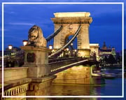 Hungría, Budapest - Puente de las Cadenas. Capital de Hungría, llamada la Perla del Danubio, esta dividida en dos partes: Buda, con los monumentos históricos, residencias imperiales, y edificaciones más clásicas, y la parte moderna, Pest, donde se concentran las tiendas, boutiques, restaurantes, cafés y edificios modernos. Resaltan los edificios clásicos como el Parlamento, el Bastión de los Pescadores, la Catedral de San Matías y el Palacio Real, así como el Puente Cadenas, sobre el río Danubio, en su paso por la ciudad.