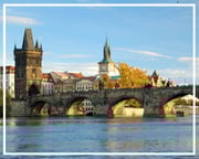 República Checa - Praga, Puente de Carlos. Praga, la joya de Centroeuropa, es una de las mas bellas ciudades europeas. El Puente de Carlos es el símbolo de la ciudad, y une las dos riberas del Vltava entre el casco histórico y el Castillo de Praga. Destacan la plaza de la Ciudad Vieja, con el famoso reloj astronómico, la Iglesia de Nuestra Señora de Tyn, el Monumento a Jan Hus, líder reformador religioso, el barrio de Mala Strana, el Castillo de Praga, y la esmerada red gastronómica local.