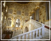 Rusia, San Petersburgo - Museo del Hermitage. San Petersburgo es la antigua capital de la Rusia de los Zares. Asentada a orillas del río Neva, la atraviesa una infinidad de canales y puentes. Cuna de la cultura zarista, reúne importantes museos, entre ellos el Hermitage, asentado en el antiguo Palacio de Invierno, con una amplia muestra de arte universal, sin contar con que el propio edificio es una obra de arte, decorada por los mejores artistas de la época.