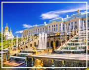 Rusia, San Petersburgo - Peterhof (Petrodvorets). El Palacio de Verano de Pedro el Grande, a orillas del Golfo de Finlandia, es una verdadera obra de arte. Esta formado por un variado enjambre de canales, jardines, palacetes, puentes y cotos de caza. Desde el patio del palacio principal cae una cascada que atraviesa la Fuente del Neptuno, representando la victoria de Rusia sobre Suecia en la Gran Guerra del Norte. Este Palacio ha sido llamado el "Versalles Ruso" por la magnificencia y exquisitez de sus diseños.