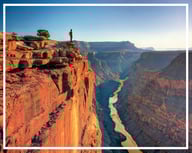 Gran Cañón del Colorado - Uno de los parajes más sorprendentes del planeta, el parque no es solo el cañón del río Colorado, sino un verdadero laberinto de quebradas, fisuras y pequeños cañones esculpidos en la roca por la naturaleza. Las capas de sedimentos expuestas toman variedades de colores a medida que se mueve el sol. Desde el Centro para Visitantes del Extremo Sur parte la mayoría de los tours por el parque, con maravillosas vistas y visitas a lugares asombrosos, y aunque el Centro para Visitantes del Extremo Norte es menos concurrido, es el preferido por el turismo especializado, aun cuando cierra de octubre a mayo por las condiciones climáticas.
